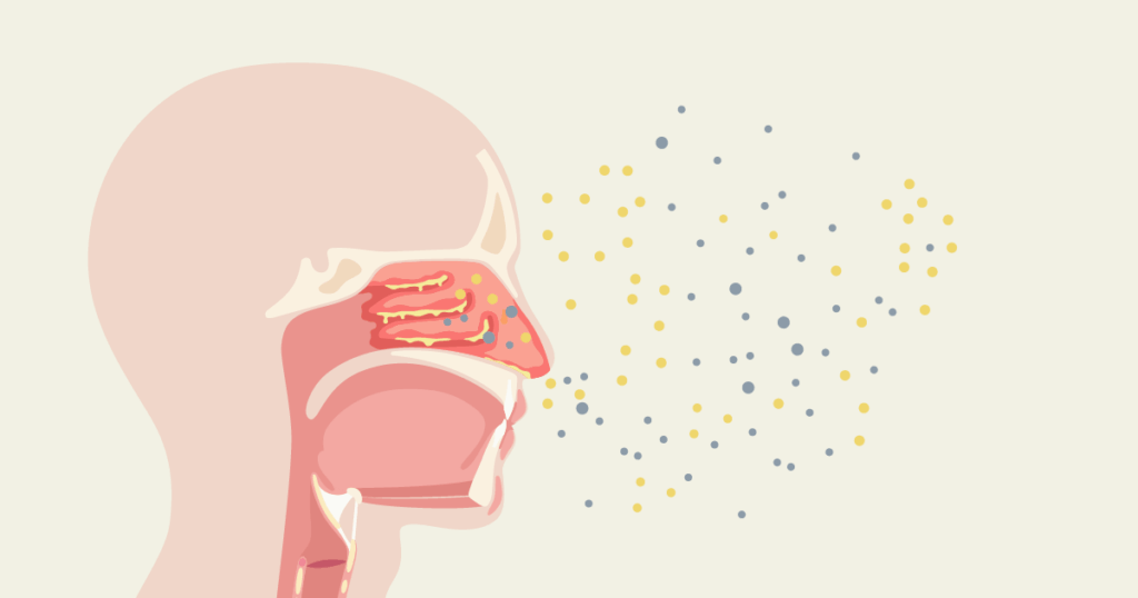 鼻の粘膜には、吸い込んだ空気中の花粉やハウスダストが付着します。